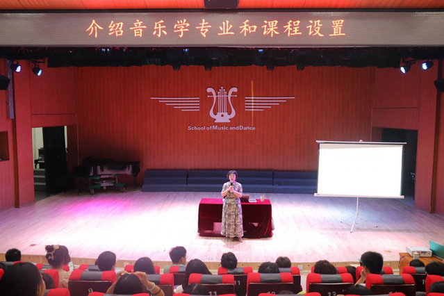 本站讯(学生记者 董铠鸣)9月11日晚音乐舞蹈学院举行了各专业介绍大会,会议由学生事务办公室(团委)欧阳兆利主持,音乐学专业负责人余澜,舞蹈学专业负责人缪从军,学前教育专业负责人熊洁主讲,全体2023级新生参与。