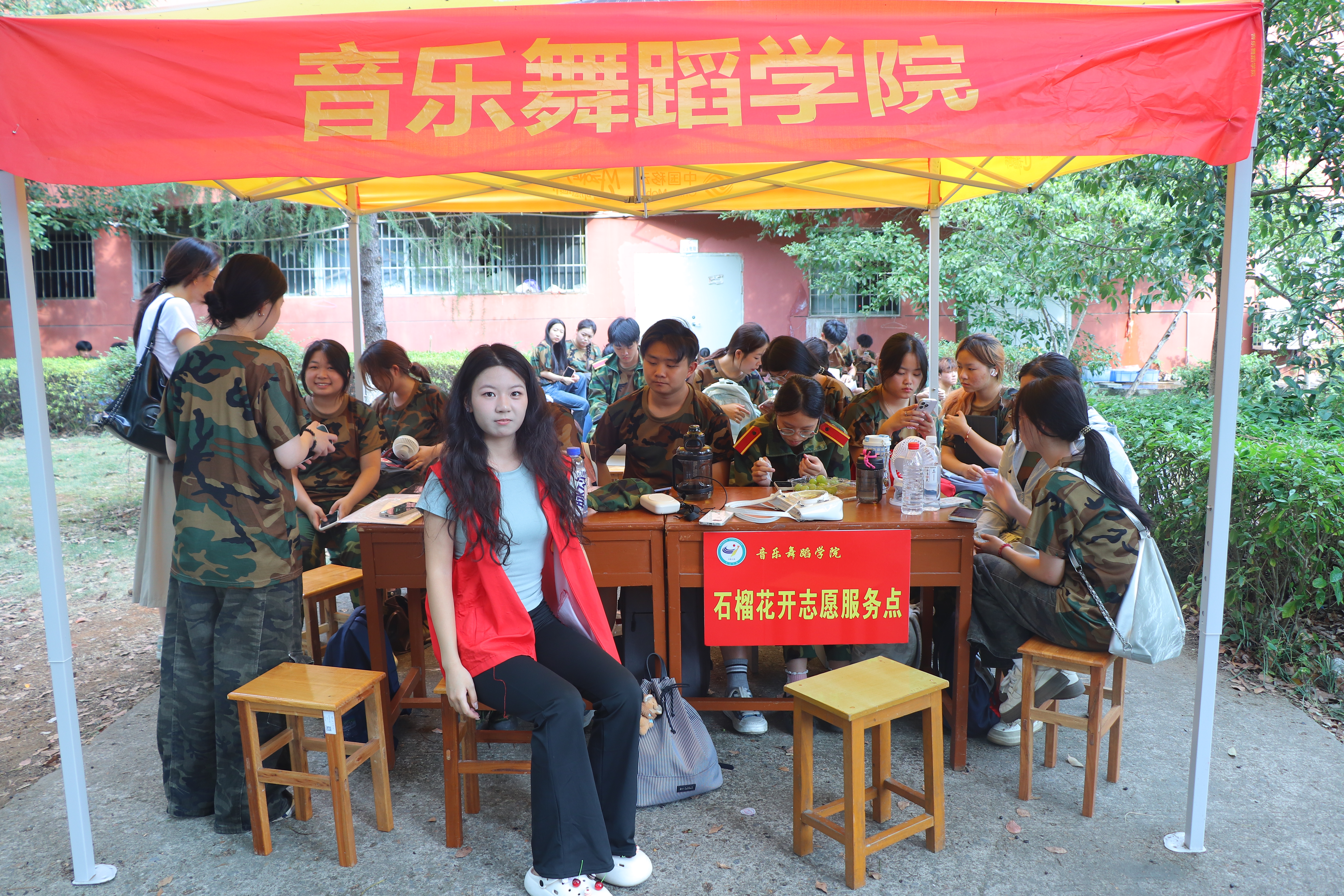 音乐舞蹈学院“石榴花开志愿服务点”在军训场地旁正式设立,志愿者们以饱满的热情和贴心的服务,为新生们的军训生活保驾护航。在志愿服务点,急救箱、饮用水等物资一应俱全。身着红色志愿马甲的志愿者们时刻待命,为训练中出现身体不适的新生提供及时的医疗帮助与休息场所;同时,他们也承担起后勤保障的职责,为新生们补充水分、传递温暖。