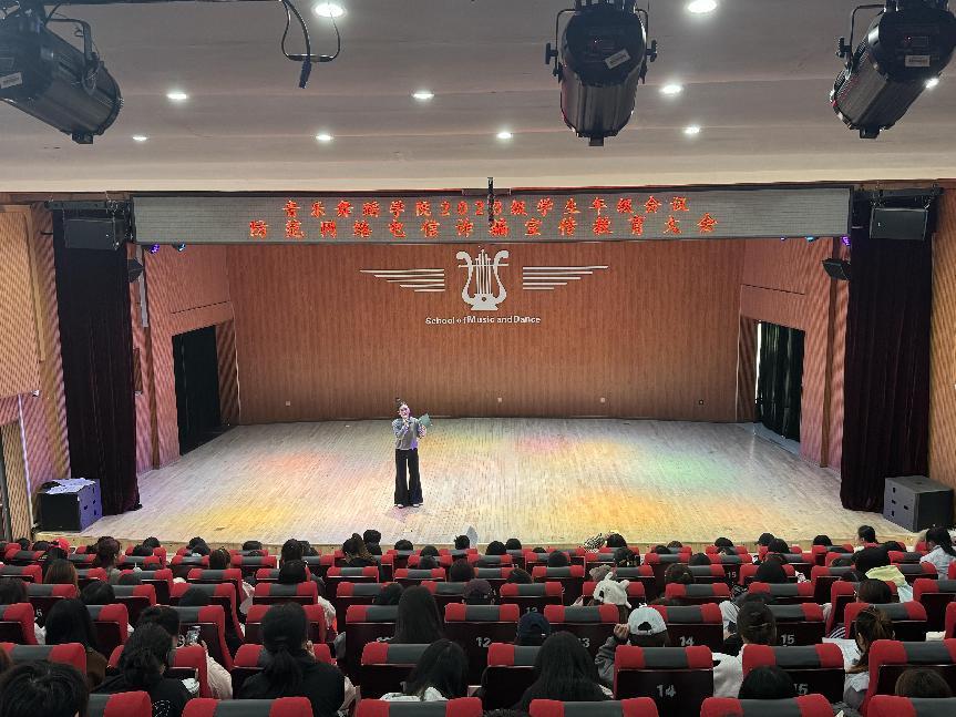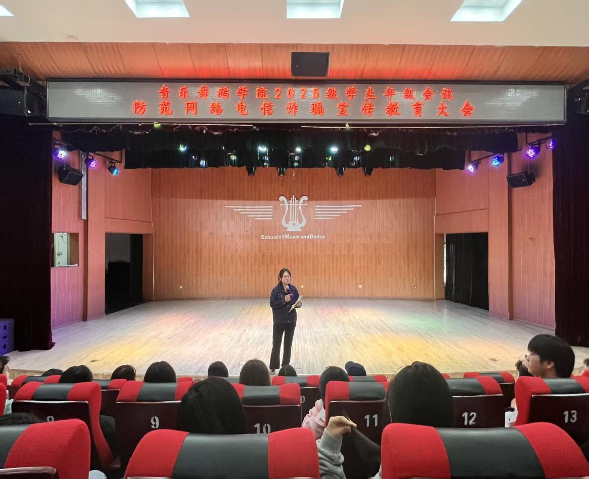 本站讯(学生记者 袁宇轩)为强化学生干部的安全防范意识,筑牢校园反诈防线,10 月 21 日晚,音乐舞蹈学院组织全体学生干部召开网络电信诈骗防范专题会议。会议由院党委副书记聂小凤主持,全体年级辅导员参会。