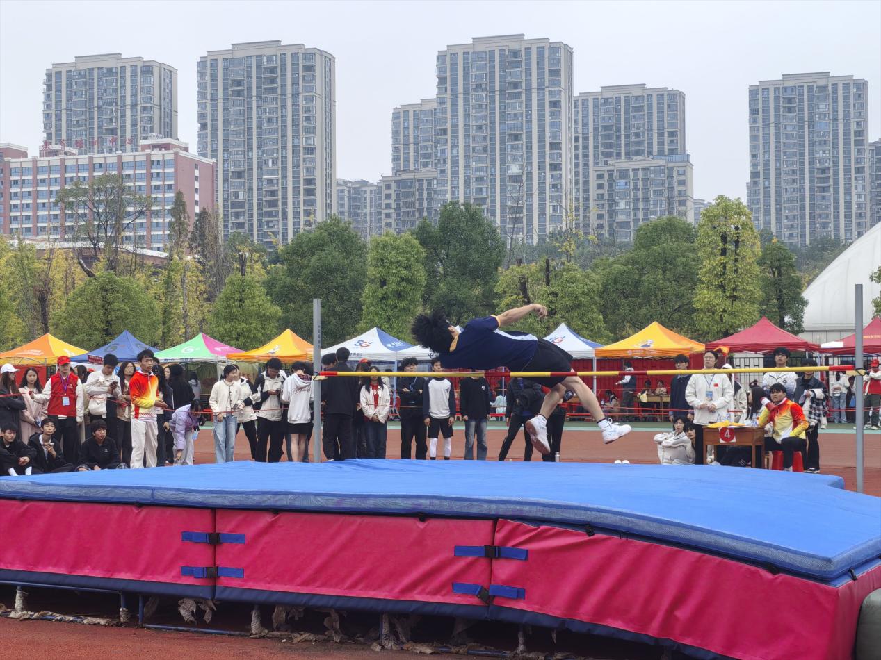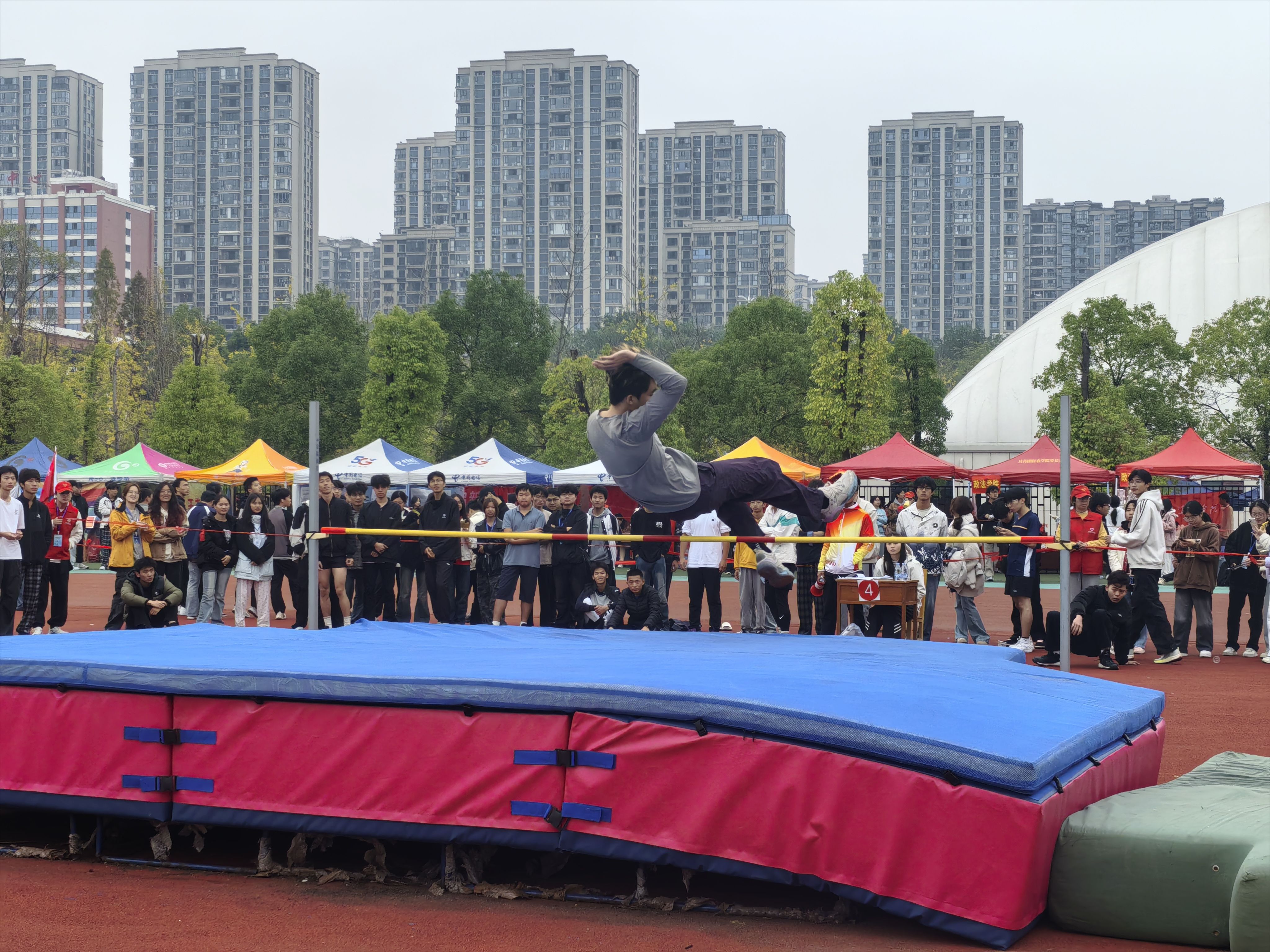 比赛过程中,三位选手全力以赴,展现出优美的技术动作与良好的身体控制力。助跑、起跳、腾空、过杆——一连串动作流畅而舒展,他们凌空跃起的身影在空中划出优美的弧线。每一次尝试都是对自我极限的探索,每一次落地都伴随着观众的掌声与鼓励,充分展现了音乐舞蹈学院学子昂扬向上的精神风貌。