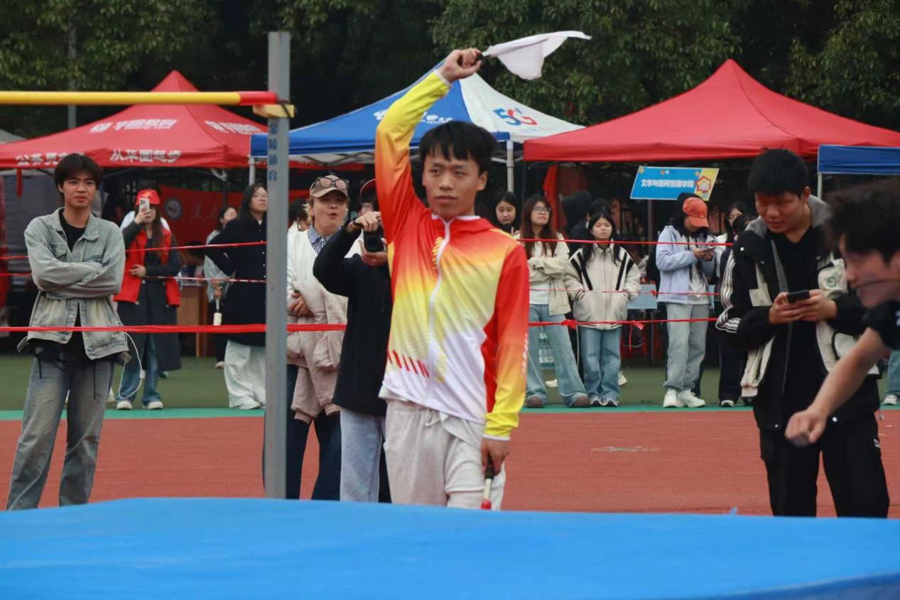 在田径跑道的起点与终点,在跳高跳远的沙坑旁,裁判员们始终保持着高度的专注。起跑发令、计时测量、成绩核定……每一个环节都需精准无误。体育学院王老师作为径赛主裁判表示:“裁判工作不仅要专业,更要有一颗公正的心。我们的职责就是确保每位运动员在公平的环境中展现真实水平,这也是对体育精神最好的诠释。”