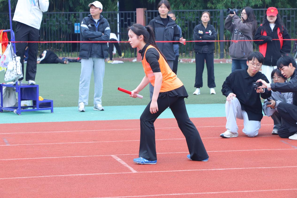 在百米冲刺的终点线前,在跳高比赛的沙坑旁,在观众席的欢呼声中,摄影记者们或俯身、或半跪,不断寻找最佳拍摄角度。他们始终紧握相机,专注捕捉每一个动人瞬间。“我们要记录的不仅是比赛结果,更是运动员拼搏的姿态、观众热烈的反应,以及那些容易被忽略的温情细节。”2024级学前教育专业的摄影记者温同学如是说。