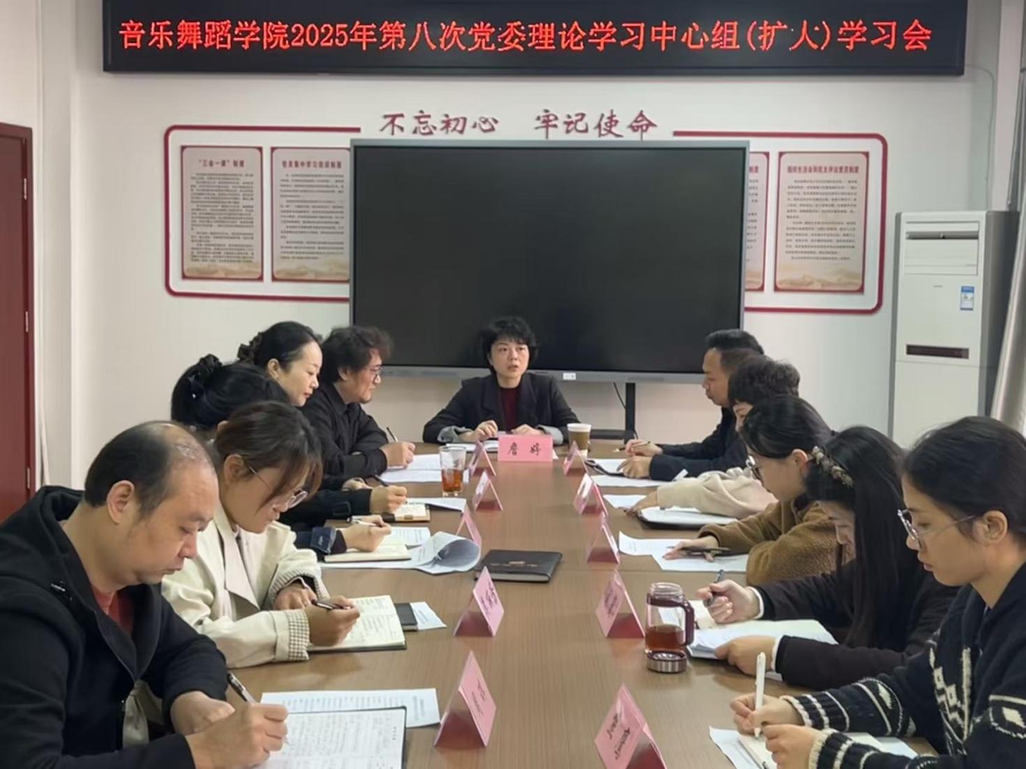 11月12日上午,音乐舞蹈学院在院党委会议室召开党委理论学习中心组(扩大)学习会,专题传达学习贯彻党的二十届四中全会精神。校党委委员、宣传部部长詹婷,校纪委监督科负责人袁立婷到会指导。学院党政班子成员、各科室负责人、党支部书记参加学习。会议由院党委书记李磊主持。