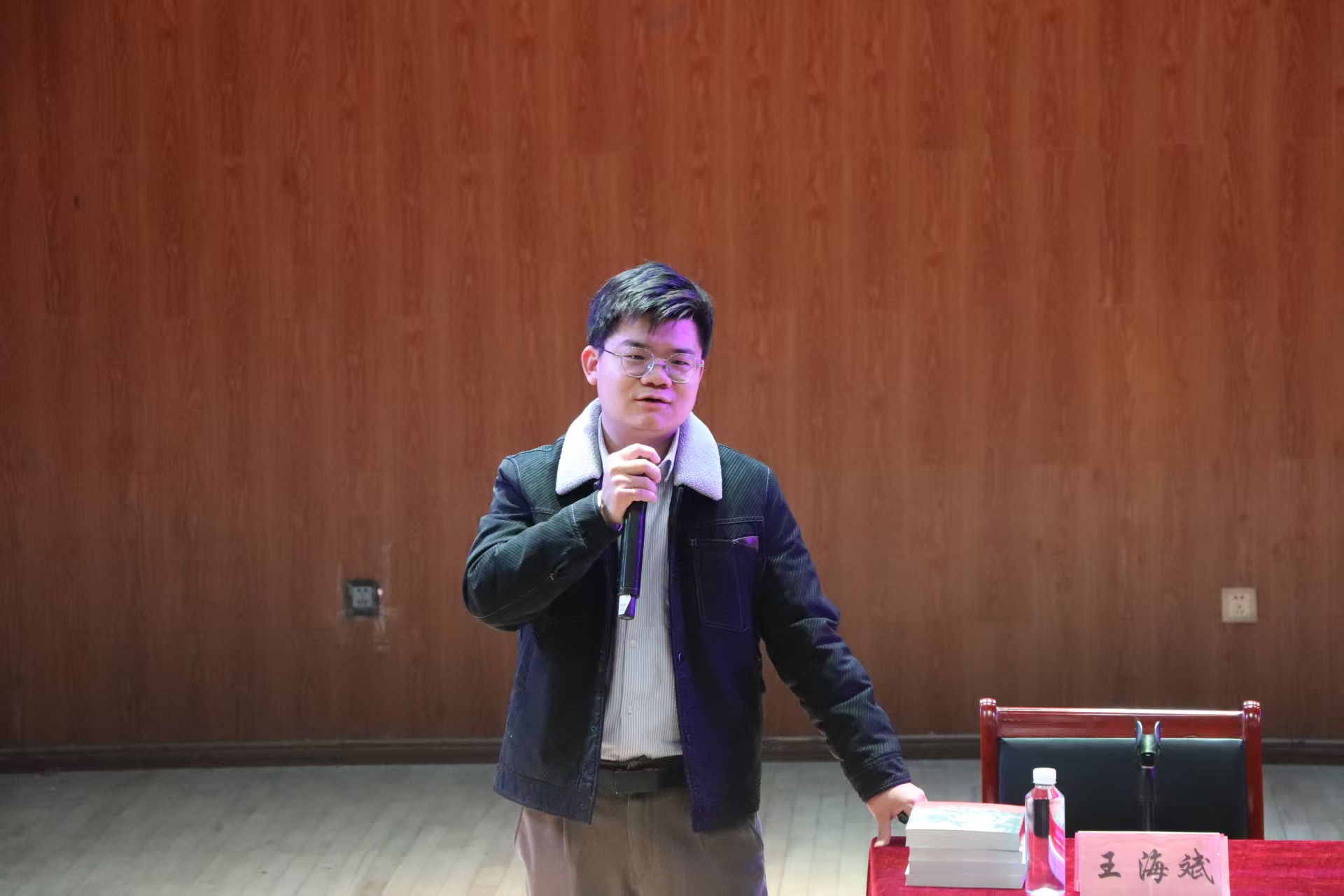 王海斌作为从该音乐厅走出的优秀学生骨干,以校友身份回望成长历程,用亲切真挚的分享搭建起理论与实践的桥梁。讲座中,他结合自身成长与工作经历,聚焦习近平新时代中国特色社会主义思想,从习近平总书记艰苦的知青岁月切入,细致讲述了总书记扎根基层淬炼初心、深耕为民事业,带领人民从温饱不足迈向幸福小康的奋斗历程,清晰梳理了习近平新时代中国特色社会主义思想的发展脉络,深刻阐释了青年一代坚定理想信念、筑牢思想根基的重要意义。