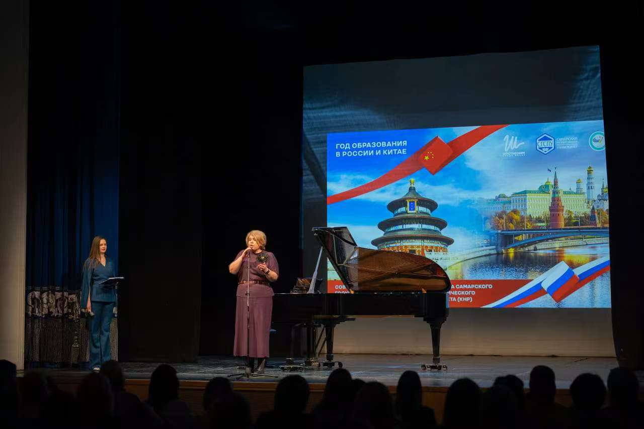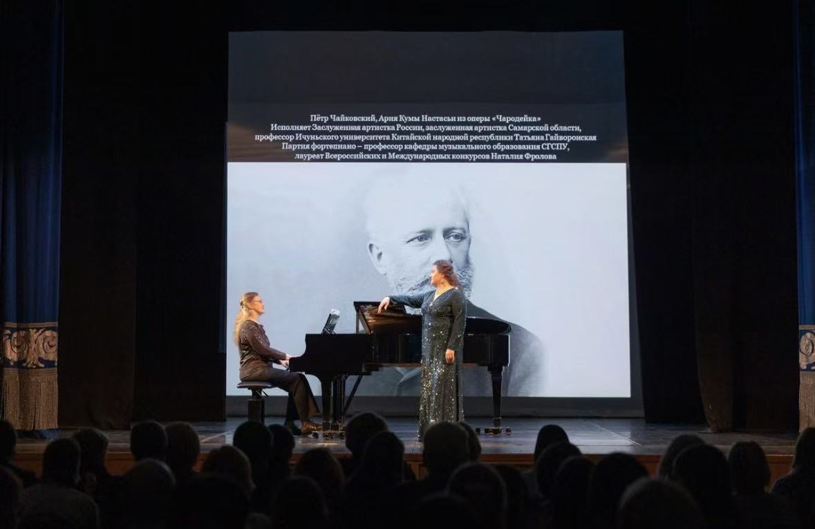 本站讯(学生记者 李晨)2月4日,俄罗斯萨马拉州肖斯塔科维奇歌剧芭蕾舞团小剧场内,一场新年音乐会温情上演。音乐会由俄罗斯荣誉艺术家、萨马拉地区功勋艺术家、萨马拉国立社会师范大学教授塔季扬娜・盖沃龙斯卡娅领衔,我院2022级音乐学(中外合作办学)学生联袂参演。