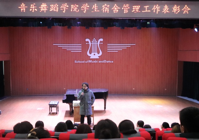 本站讯(学生记者 樊娜)为增强学生对宿舍文明建设的积极性,进一步落实我院宿舍管理工作,音乐舞蹈学院于12月24日晚在音乐厅召开宿舍管理工作表彰大会。此次会议由音乐舞蹈学院学生事务办公室主任李磊主持,音乐舞蹈学院全体寝室长共同参加。