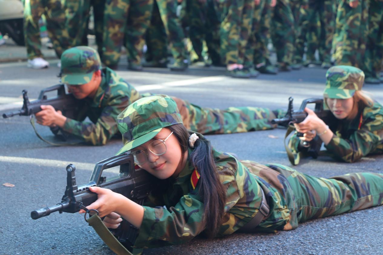 露天射击场上,同学们俯卧在指定位置,第一次握紧钢枪。阳光直射在金属枪身上,反射出耀眼的光芒。从最初的紧张无措到后来的沉稳击发,每个人都在这个过程中学会了控制与专注。教官严格指导每个动作要领:卧倒姿势、握枪方式、瞄准技巧、击发时机。汗水顺着脸颊滑落,但同学们的目光始终专注。实弹射击时的后坐力和轰鸣声,让每个人真切感受到了力量与责任的分量。