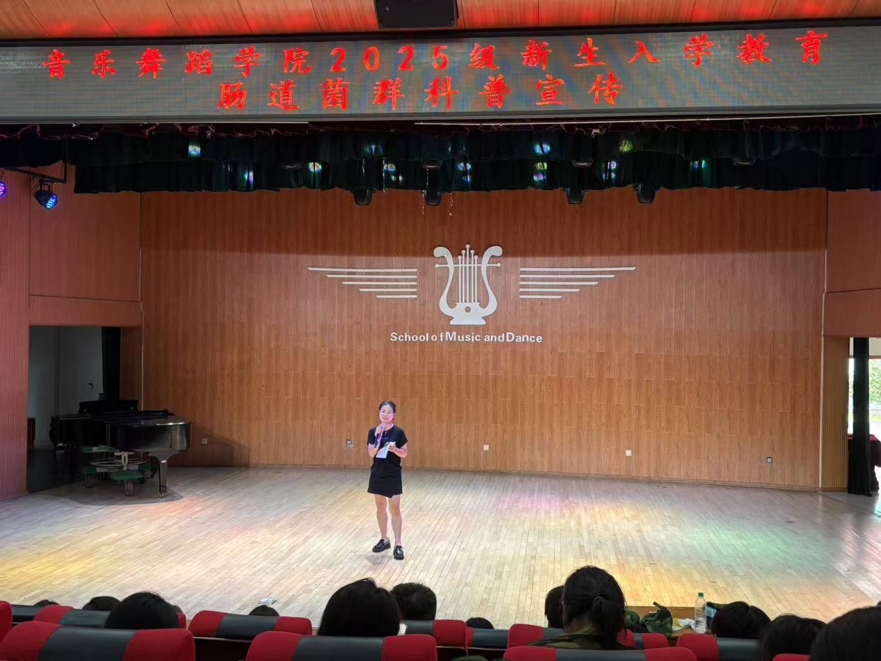 本站讯(学生记者 姜文欣)9月11日为了帮助新生们快速适应大学生活,建立科学的健康管理观念。音乐舞蹈学院在艺术楼音乐厅开展了肠道菌群的科普宣讲。