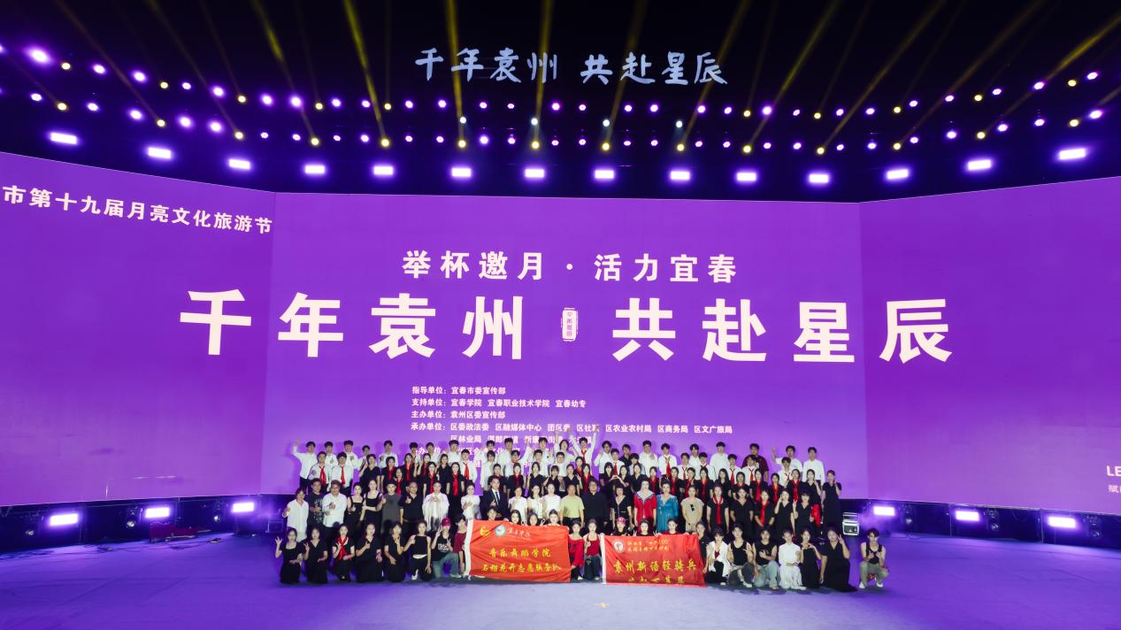 本站讯(记者 袁哈 学生记者 温乐花)华灯璀璨,月映袁州。自9月26日起,由宜春市委宣传部指导、宜春学院支持、袁州区委宣传部主办的“举杯邀月·活力宜春”暨“千年袁州·共赴新城”全民消费活动季大型文艺演出在宜春市隆重举行。宜春学院党委书记李国金应邀出席了9月26日晚的启动仪式。我校高度重视此次校地合作,音乐舞蹈学院、体育学院及文学与新闻传播学院师生联袂承担了多场晚会的核心演出,呈现了一系列形式多样、内涵丰富的精品节目。一幅校地深度融合、共促文化繁荣的生动画卷正徐徐展开。