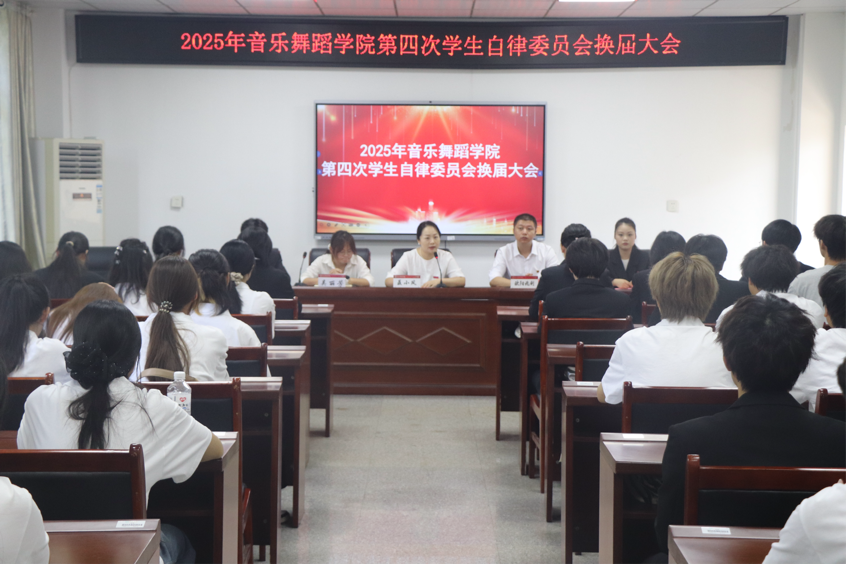 本站讯 (学生记者 袁宇轩)2025年9月26日中午12:00,音乐舞蹈学院第四次学生自律委员会换届大会于艺术楼新会议室举行。本次大会以院学生自律委员会第四次换届为主题,由院自律委员会指导老师欧阳兆利主持,院党委副书记聂小凤、院学生工作办公室(团委)主任吴丽芳、校学生自律委员会主任毕文涛、院学生自律委员会全体学生骨干出席。