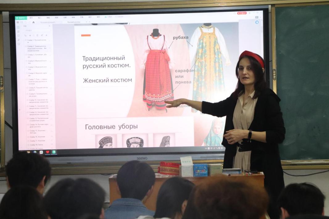 本站讯(学生记者 吴炎峰)3月27日晚,我院音乐学(中外合作办学)专业于艺术楼2102教室开展有关俄罗斯服饰和传统图案的俄语角活动。本次活动由外教Ольга Александровна(奥尔加)主讲,邬佳丽老师及24、25届中俄班全体学生参与。