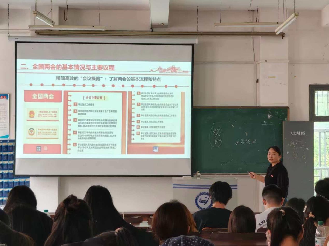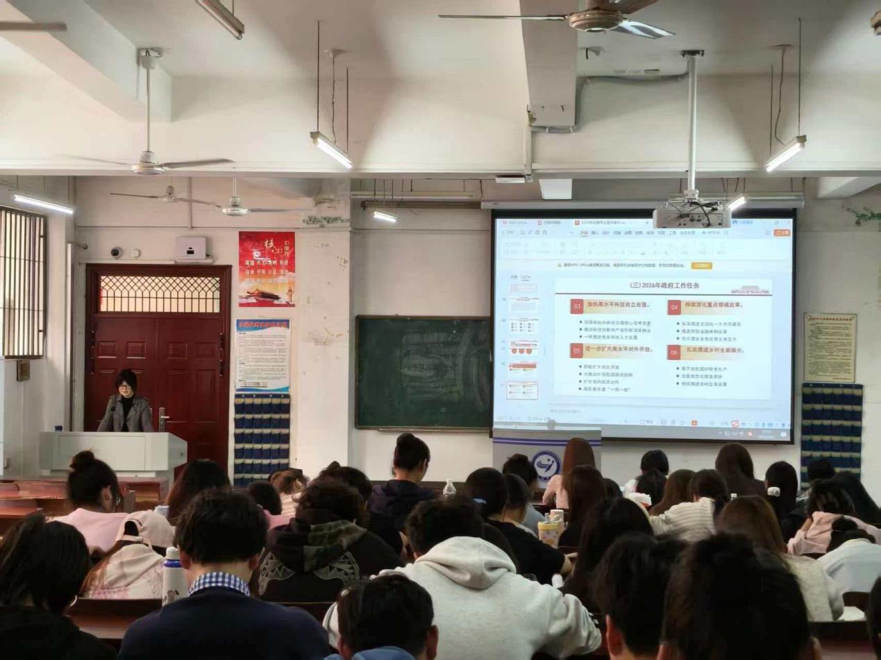 课堂上,授课教师紧扣两会核心要义,结合音舞学子的成长规律与专业特色,从两会基本概况、时代价值、政策部署等维度展开深入讲解。特别是围绕2026年全国两会作为“十五五”新征程“出征动员会”的重要定位,老师们重点解读了政府工作报告中关于文化事业发展、艺术人才培养、新质生产力培育等与艺术教育紧密相关的内容,将“高质量发展”“文化自信”“美育赋能”等核心理念,转化为学生易懂、可用、能践行的专业语言。